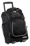 Party-sized cooler rolls with ease on sturdy wheels and an adjustable-height handle.