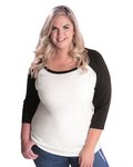 LAT Women's Curvy Collection Baseball Three-Quarter Sleeve Tee 3830