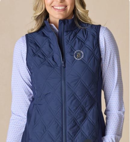 The Hestia Vest is perfect for cooler days on the course. It offers lightweight warmth with ultralight poly-fill insulation and features a quilted front paired with a stretchy knit back for a mix of comfort and flexibility. The Vislon zipper ensures smooth operation, and zippered hand pockets keep your essentials secure. Made from 100% polyester woven fabric and 92% polyester with 8% spandex brushed back knit, it’s designed to keep you cozy and mobile while you play.